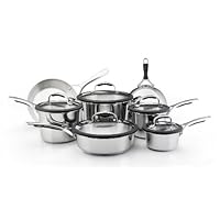 This cookware set is an exceptional value, including all of the pans needed to equip your kitchen with the most used cooking pieces. As the set contains only basic pieces, you'll really use each and every pan. It includes saucepans for whisking a homemade sauce or cooking your morning oatmeal, a big stockpot for soups, stews or boiling pasta, and skillets (probably the most used pan in any kitchen) that will help you turn out perfect crepes or a simple grilled cheese sandwich. The set also includes a saute pan, a wide, straight-sided pan that can perform many of the functions of a skillet but features deep sides for extra capacity, perfect for one dish meals. Start your dish in this pan by sauteing onions and browning meat, then add your liquid and other ingredients into the same pan to finish on the stovetop or in the oven.